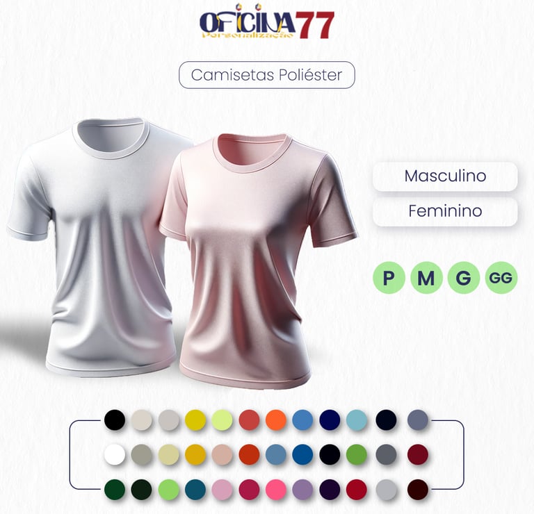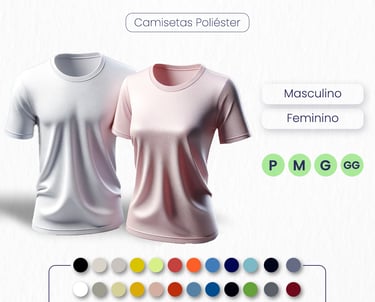 Camisetas em fibra sintética como, Poliéster, Malha fria e Dry fit em diversas cores e gramaturas .